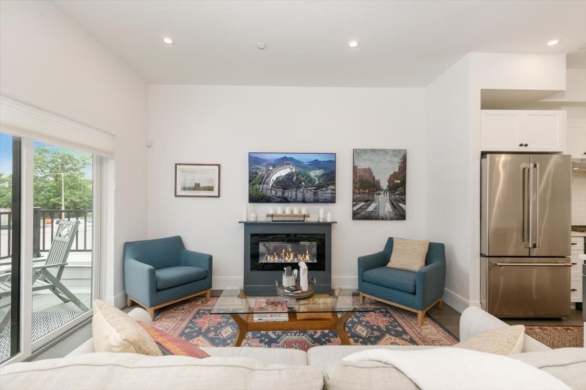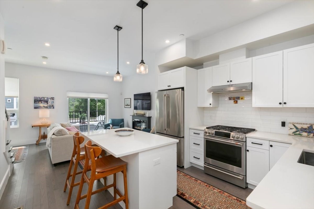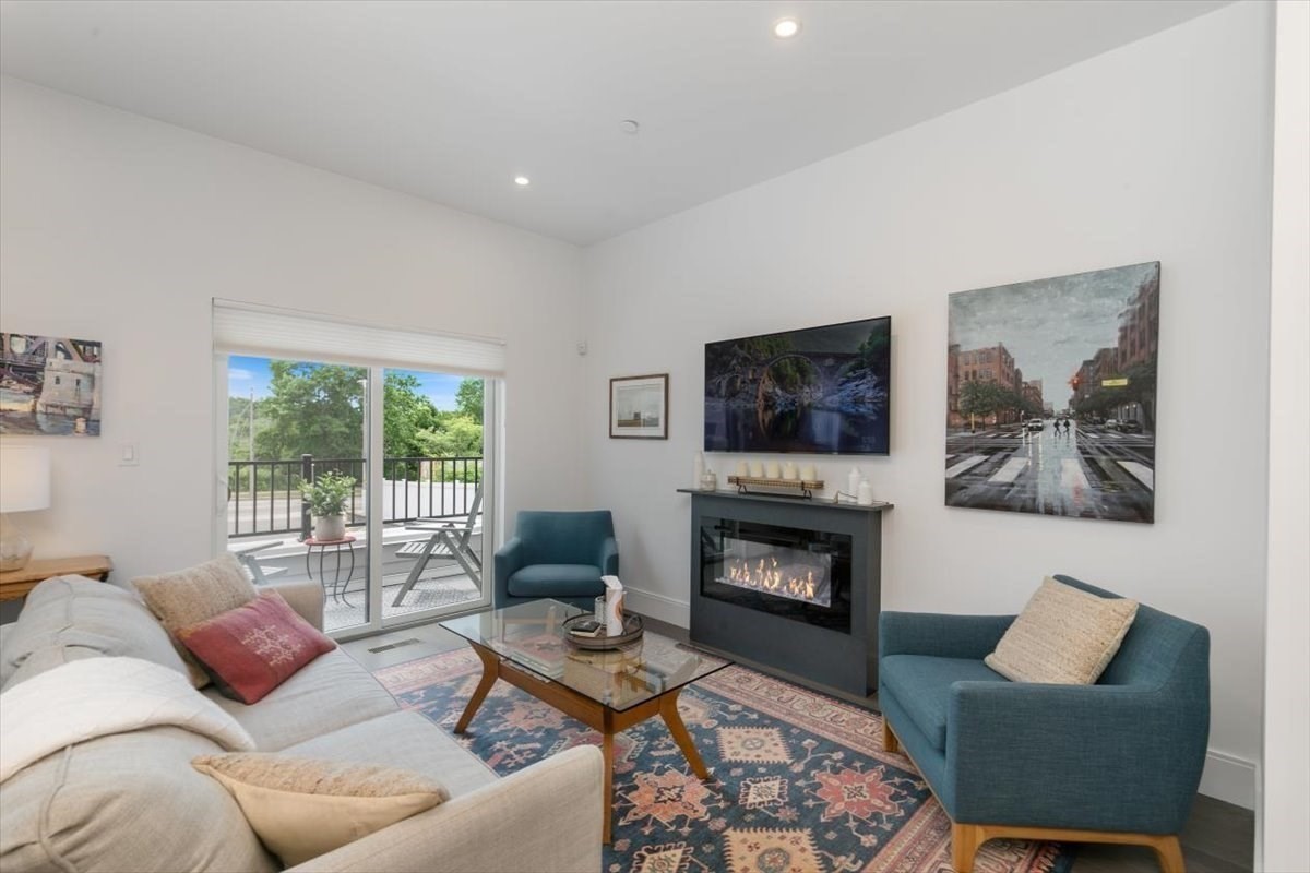 Beautiful Charles Park townhome in West Roxbury with many neighboring developments! Built in 2022, this stunning 3 bed, 2.5 bath home offers open concept living with high-end finishes. The center-island kitchen with quartz counters and Café & Bosch appliances flows into spacious living/dining areas and a private deck. The main bedroom suite feat. a luxurious, spa-like bath with a skylight, 9' ceiling, juliet balcony and a large, walkout deck for watching beautiful sunsets over the Charles River. A LEED Silver certifiable home with custom shades, Lutron dimmers and designer lighting. Other features include hardwood floors throughout, a fireplace, 3-zone HVAC, Anderson windows, central vacuum, attached, heated 2-car garage, and a second floor laundry area that accommodates a full size washer/dryer. Easy access to Millennium Park, commuter rail, Legacy Place, The Street at Chestnut Hill Mall, Longwood Medical Area, day care, the VFW Parkway, conservation land, Routes 1 & 128.