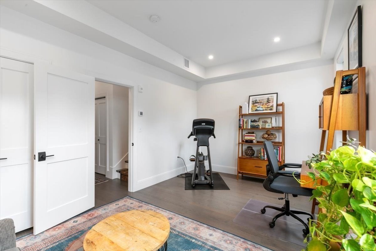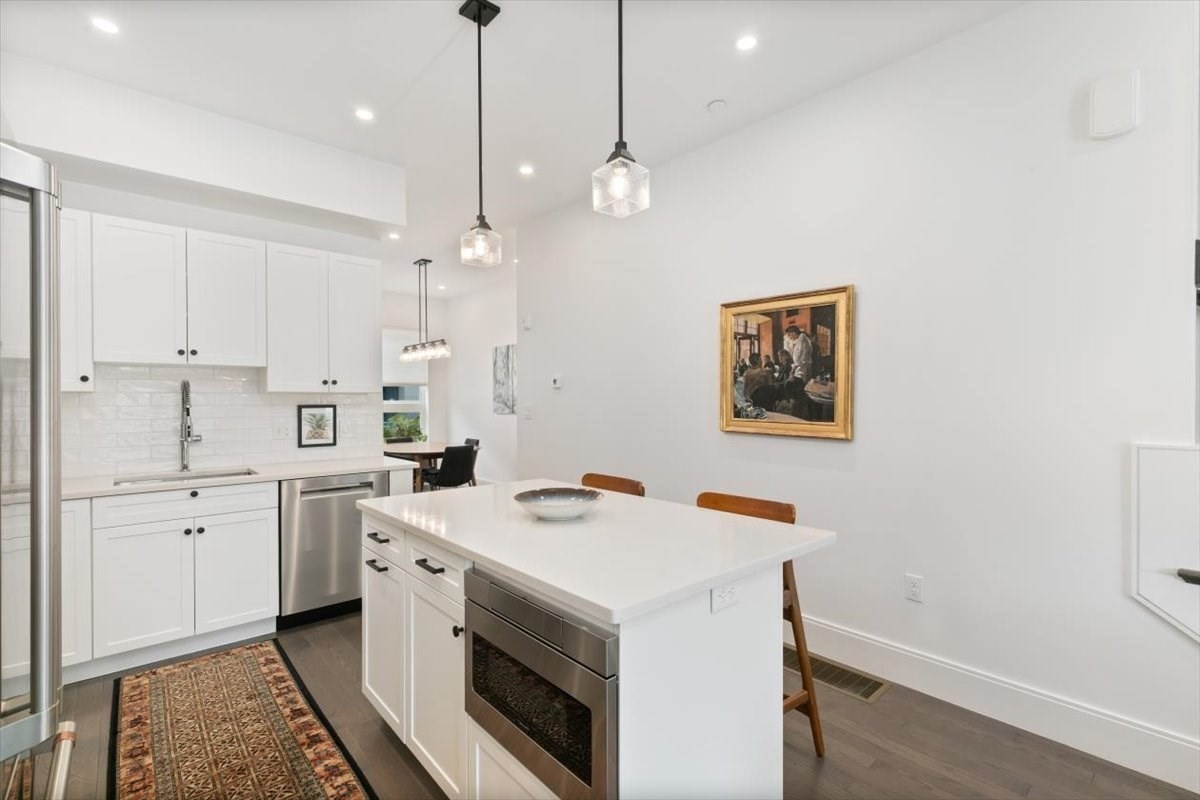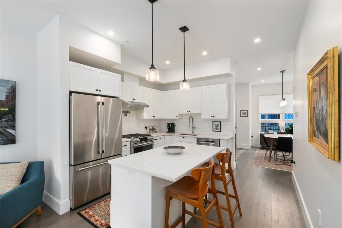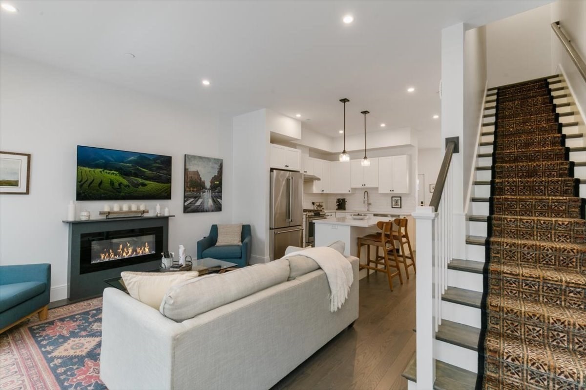 Beautiful Charles Park townhome in West Roxbury with many neighboring developments! Built in 2022, this stunning 3 bed, 2.5 bath home offers open concept living with high-end finishes. The center-island kitchen with quartz counters and Café & Bosch appliances flows into spacious living/dining areas and a private deck. The main bedroom suite feat. a luxurious, spa-like bath with a skylight, 9' ceiling, juliet balcony and a large, walkout deck for watching beautiful sunsets over the Charles River. A LEED Silver certifiable home with custom shades, Lutron dimmers and designer lighting. Other features include hardwood floors throughout, a fireplace, 3-zone HVAC, Anderson windows, central vacuum, attached, heated 2-car garage, and a second floor laundry area that accommodates a full size washer/dryer. Easy access to Millennium Park, commuter rail, Legacy Place, The Street at Chestnut Hill Mall, Longwood Medical Area, day care, the VFW Parkway, conservation land, Routes 1 & 128.