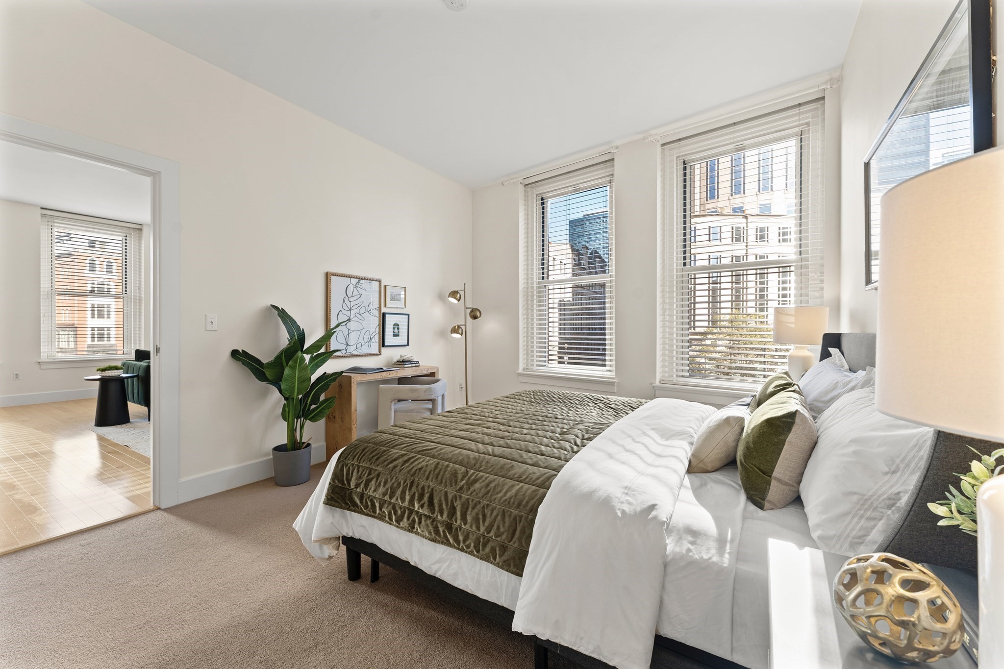 A rare corner two-bedroom, two-bath loft offering scale, light, and value in the heart of Downtown Boston. At 1,137 square feet, this residence features soaring ceilings, dramatic corner exposure, and oversized windows with open views toward Chinatown Park and the Rose Kennedy Greenway.The layout is both functional and refined, with an open living and dining area ideal for entertaining, a modern kitchen with gas cooking, and two well-proportioned bedrooms separated for privacy. The primary suite includes an en-suite bath and generous closet space, creating a calm retreat from the city.Recently refreshed with new paint and professional staging, the home is move-in ready while offering flexibility for personalization. Located in a professionally managed elevator building with a serene interior courtyard and additional storage, close to South Station, multiple MBTA lines, and Downtown’s dining and cultural amenities.